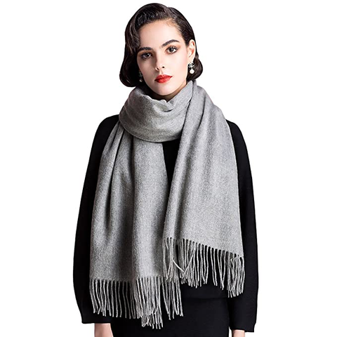 تصميم جديد وشاح ناعم للنساء والرجال وللنساء ، وشاح ملون عالي الجودة رمادي بشرابة للسيدات ، شال للمكتب ، وشاح صوف من الصوف
