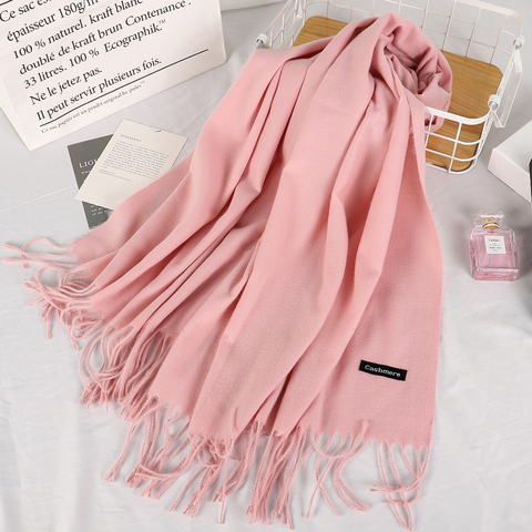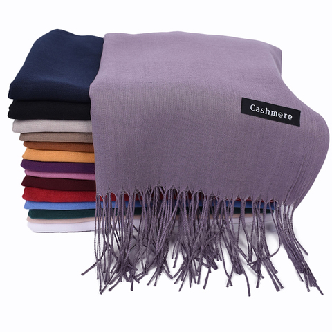 وشاح كشميري نسائي شتوي بألوان سادة للسيدات وشاح بشمينا سادة حجاب دافئ بشرابة وشاح مخصص للعلامة التجارية
