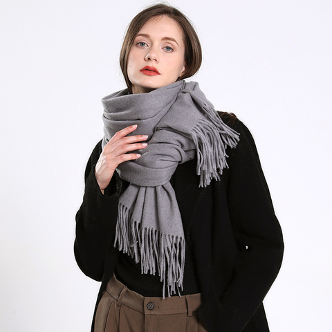 شتوية وخريفية للنساء شتوية من الكشميري بلون واحد هدية مخصصة شالات صوف سميك وشاح دافئ